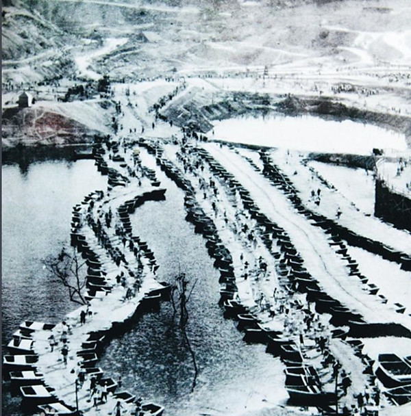 1958年松濤水庫6萬大軍一七零大會戰(zhàn)場景,展現(xiàn)松濤人的精神與風(fēng)貌。